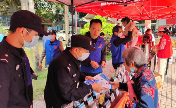 活動現(xiàn)場,黨員和志愿者們精神飽滿,分工協(xié)作,互相配合,搭建起禁毒宣傳、垃圾分類、便民理發(fā)、健康檢查等展位,為轄區(qū)居民提供各類便民服務。